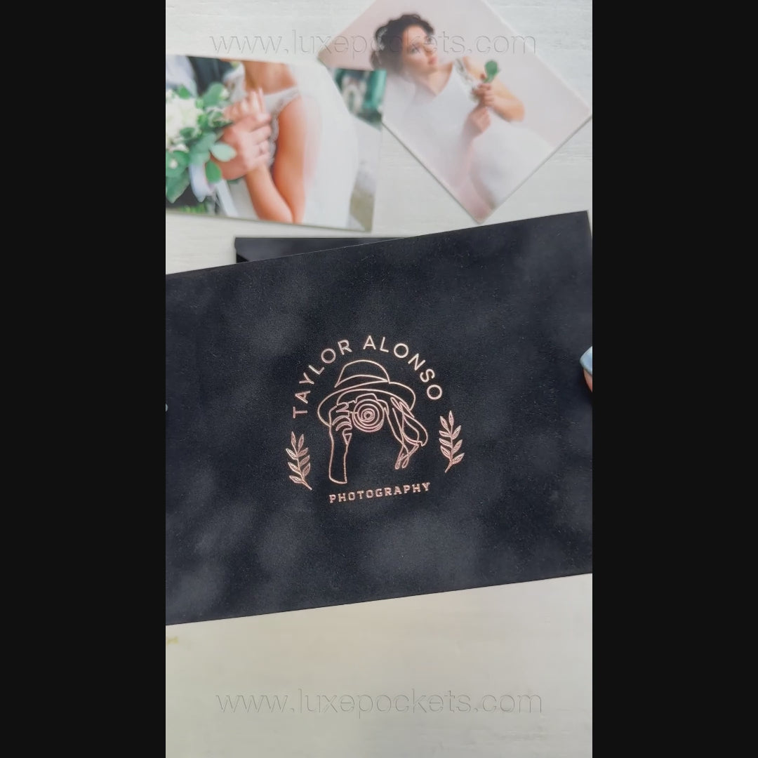 These envelopes, crafted from FSC-certified velvet fabric and 100% recycled paper, offer acid-free preservation for invitations, stationery, or greeting cards. They can be elegantly foiled with wedding logos, monograms, or custom text.