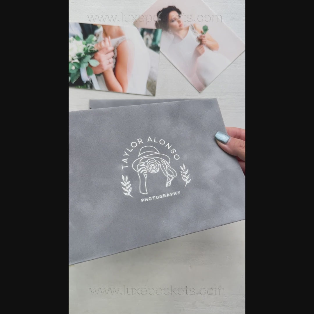 These envelopes are crafted from FSC-certified velvet fabric and 100% recycled paper, offering acid-free preservation for invitations, stationery, or greeting cards. They can be elegantly foiled with wedding logos, monograms, or custom text.